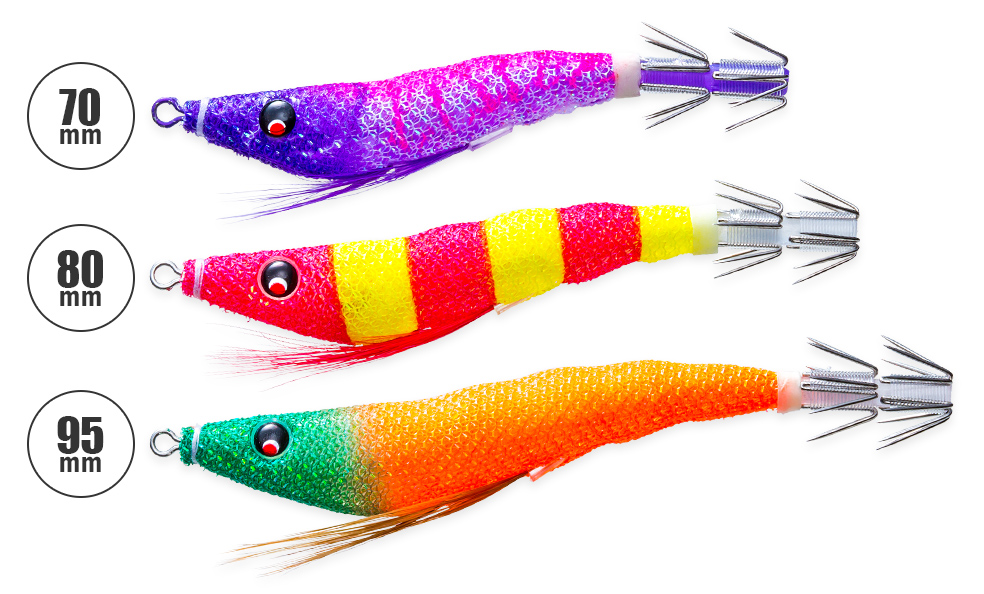 Il corpo sottile e altamente realistico riproduce fedelmente la sagoma di un gamberetto, una delle prede principali dei calamari.