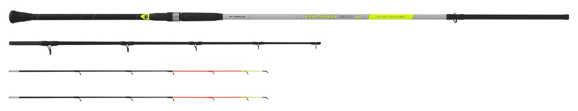 Uno dei principali punti di forza di questa canna è la dotazione di due cime intercambiabili (Light e Medium), entrambe lunghe 650 mm con diametro di 4,60 mm. Questa caratteristica permette al pescatore di adattare rapidamente l’attrezzo alle condizioni di pesca e alla sensibilità richiesta, migliorando il controllo e la percezione delle abboccate.